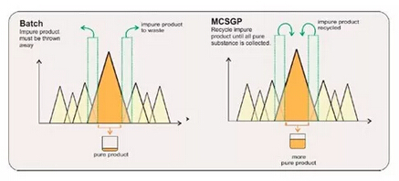 ? ? ? MCSGP工藝,可將含有不純組分的產品回收在一個封閉的環(huán)內,進行循環(huán)式的層析操作,從而最大限度地提取純產品,使得收率和純度二者兼得。