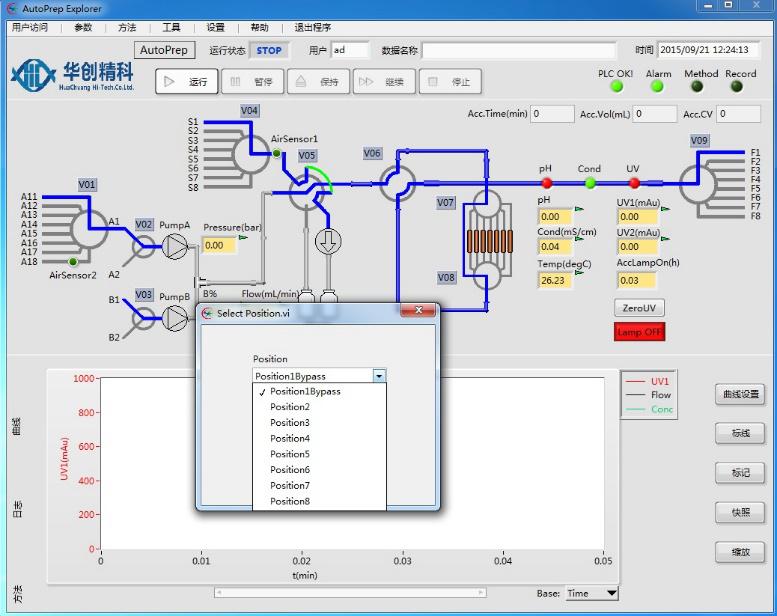 6、全自動柱流向切換閥門,可實現(xiàn)層析柱正、反向流動及旁路功能;