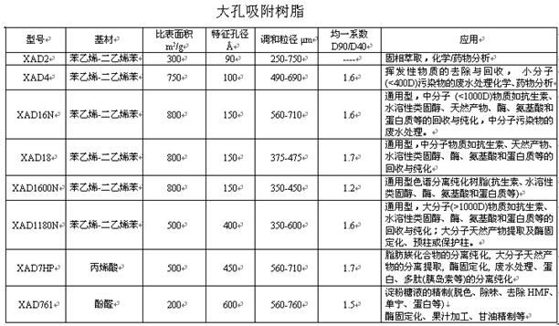 ??? 羅門哈斯XAD系列大孔吸附樹脂分別是以苯乙烯-二乙烯基苯、丙烯酸和酚醛為基材,分為非極性樹脂、弱極性樹脂和極性樹脂。根據(jù)樣品的極性區(qū)別,在醫(yī)藥及天然產(chǎn)物領(lǐng)域有著廣泛的應(yīng)用。