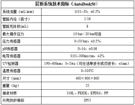 AutoDesk全自動(dòng)層析系統(tǒng),應(yīng)用于實(shí)驗(yàn)室級(jí)別工藝開發(fā)及小試實(shí)驗(yàn),有AutoDesk50和AutoDesk100兩種規(guī)格可選,需外接電腦。