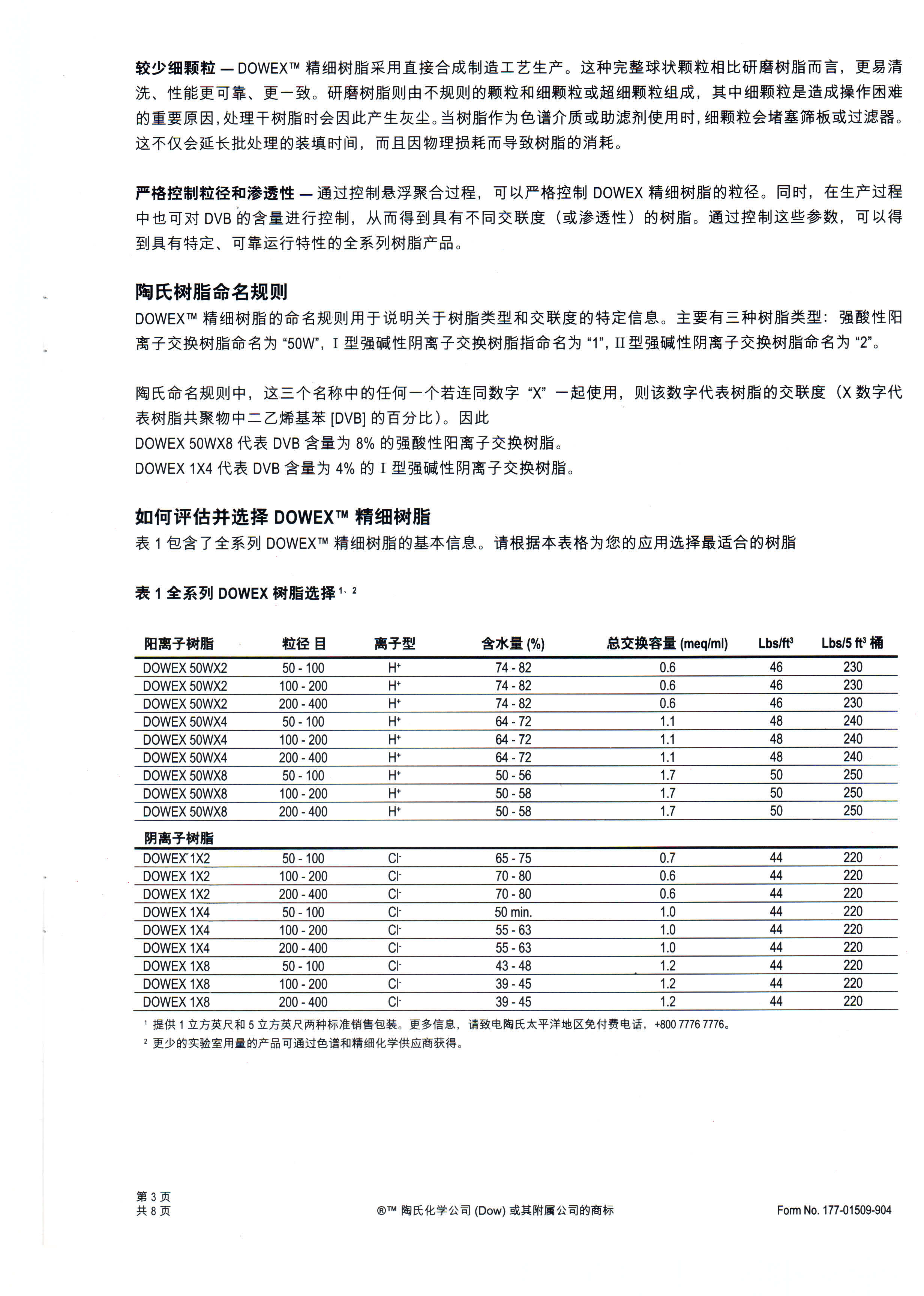 DOWEX1×8-2 | DOWEX1×8強堿性陰離子交換樹脂,200-400目 |