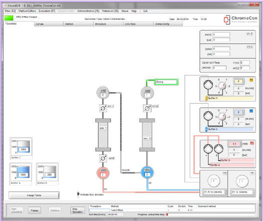 所有的Contichrom系統(tǒng)均具有完整的層析工藝運(yùn)行能力,支持多種洗脫模式,ChromIQ軟件可以提供純化向?qū)Чδ?,以支持批生產(chǎn)工藝的設(shè)計(jì)和執(zhí)行。