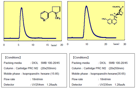 ?????? 富士公司經(jīng)過對二醇基硅膠的生產(chǎn)工藝和特性的研究,發(fā)現(xiàn)了普通硅膠在正相色譜中沒有的獨(dú)特性能。目前為止DIOL Silica已被廣泛用于分離有問題的化合物。