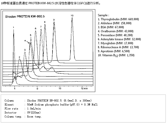 蛋白質的分子量范圍(流動相 :磷酸緩沖液)